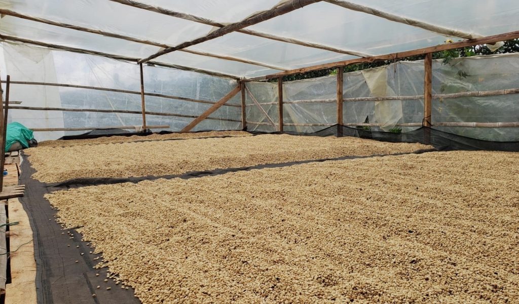 Fully washed and dried inside solar dryers that provide protection from the rain