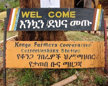 This coffee is sourced from family owned farms organized around the Konga Cooperative located within the coffee region of Yirgacheffe in the Gedeo Zone, Southern Nations, Nationalities, and Peoples' Region, Ethiopia. The Konga Cooperative currently has 1,556 members. In 2002, the cooperative joined the Yirgacheffe Coffee Farmers Cooperative Union (YCFCU), an umbrella organization established in 2002 to support a sustainable coffee supply from cooperatives in the Gedeo ethnic region of Ethiopia. There are twenty-six other cooperatives affiliated with the YCFCU totaling more than 45,000 members.