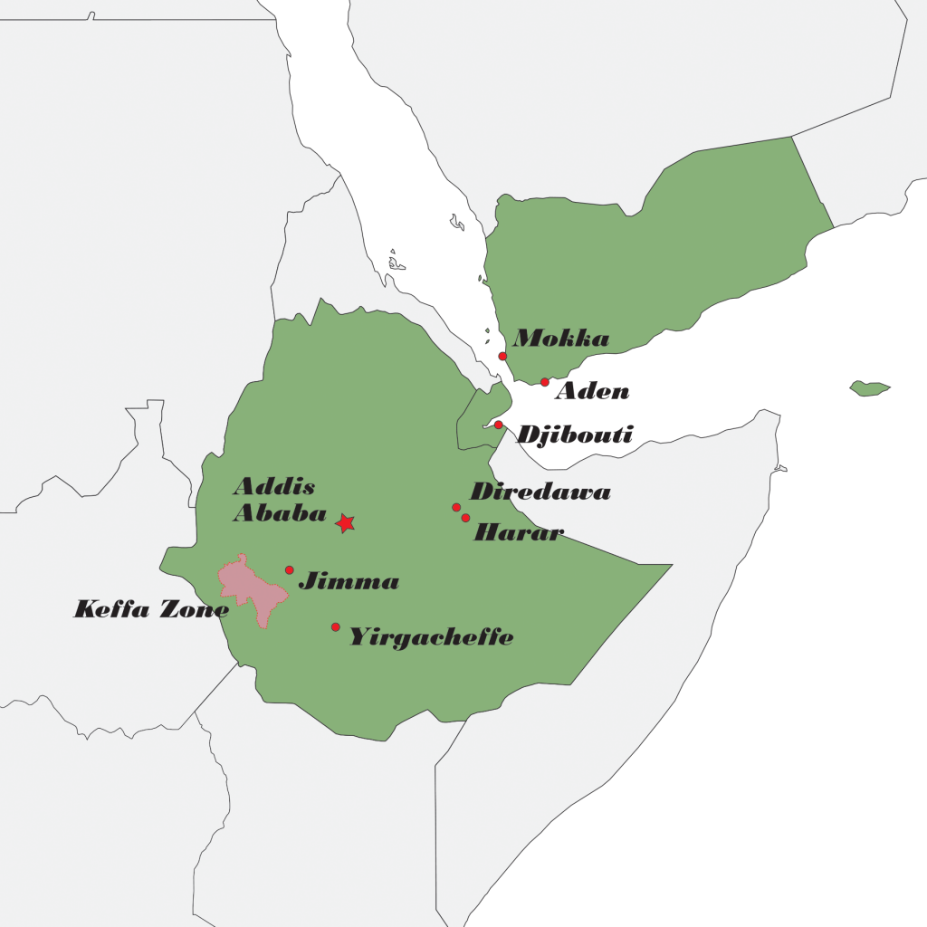 Ethiopia’s indigenous coffee consumption practices predate written history, yet its ventures into the commoditization of the crop occurred relatively late. The fragmented civilizations and societies that occupied Ethiopia are diverse, and—until the country unified under Emperor Menelik II a little before the turn of the 20th century—were not producing recognized quantities of exportable coffee.
