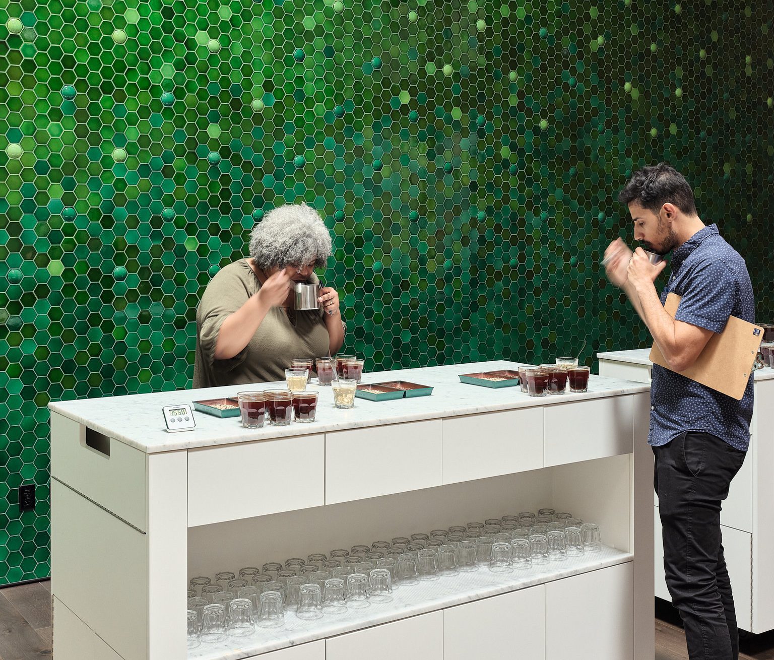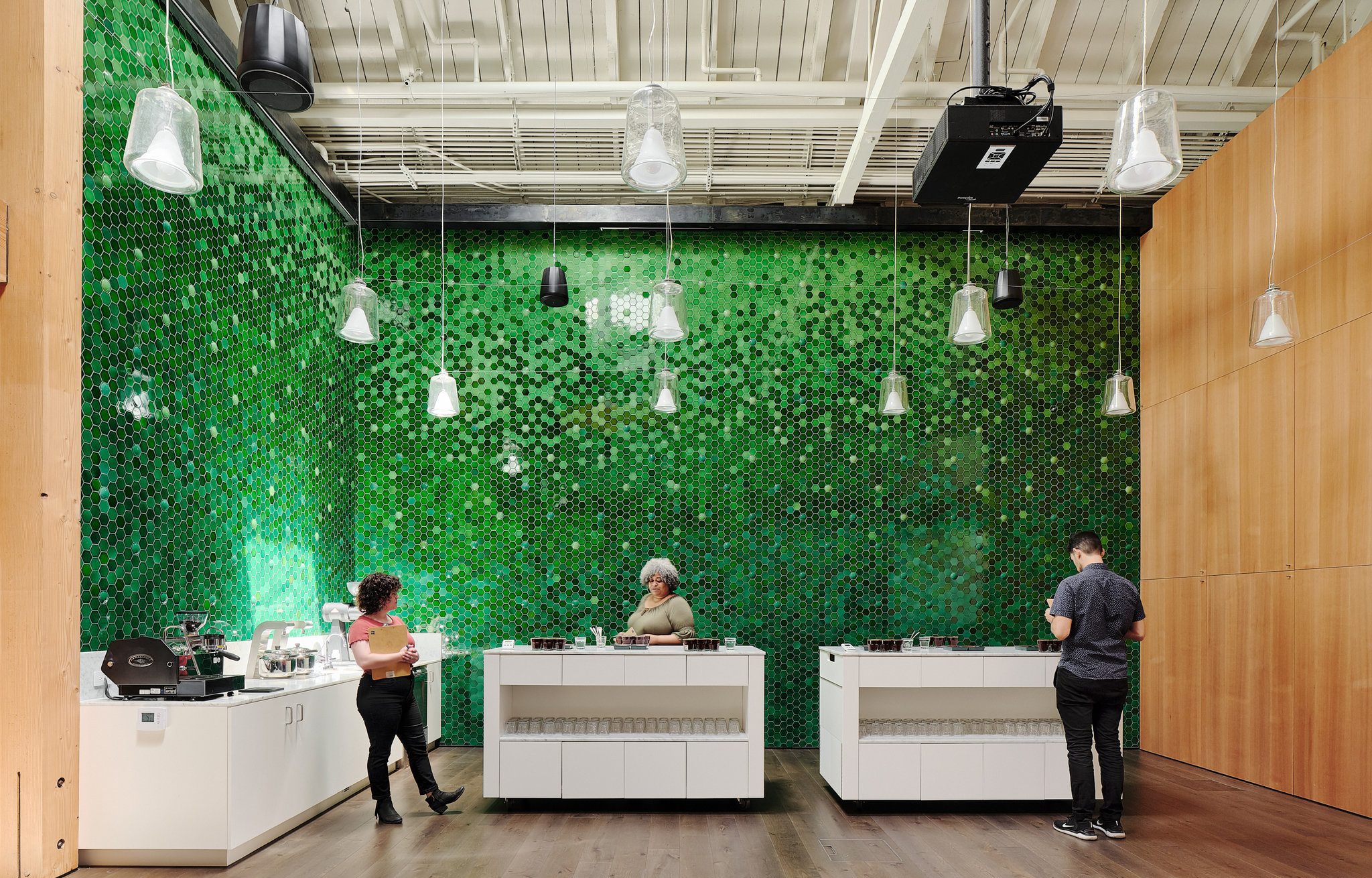 The Tasting Room has a modular espresso bar created by Oakland artist Joe Chambers, as well as:
