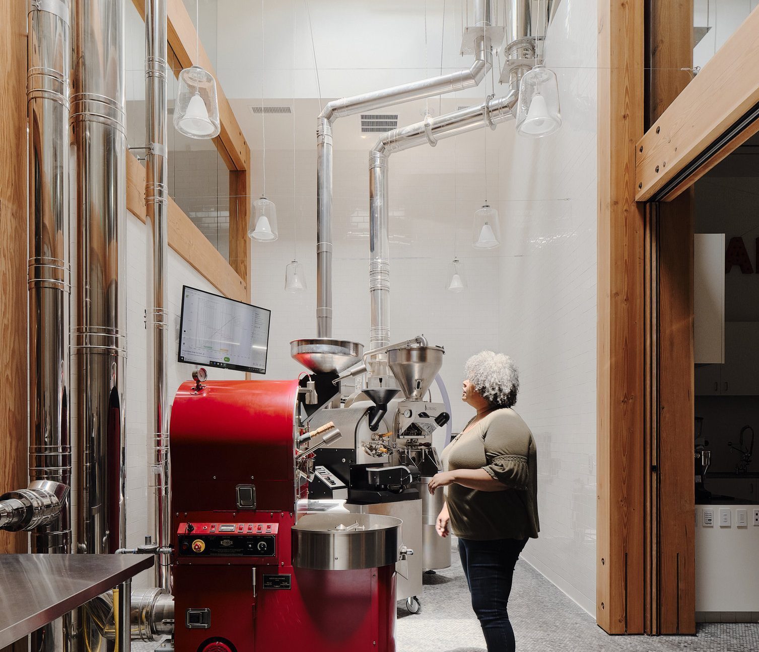 When the pocket Nanawall moveable glass doors are opened, this room can connect to either the Roast Lab or the Presentation Room, making it ideal for viewership overflow, or to house a catering company.