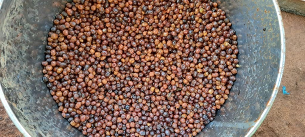 Tracon have kindly shared with us the cultivars for this lot, a combination of the usual local landraces from the region. In this case, Kurume (Kudhume) is known for small fruit and compact size, while Dega (Amharic for a “high, cool place”) is a medium-sized tree that unsurprisingly prefers planting at higher elevations, and Wolisho (Walichu) is a tall tree with large fruits but inconsistent seasonal yields. (Credit to Getu Bekele and Tim Hill for their research and documentation in A Reference Guide to Ethiopian Coffee Varieties.)