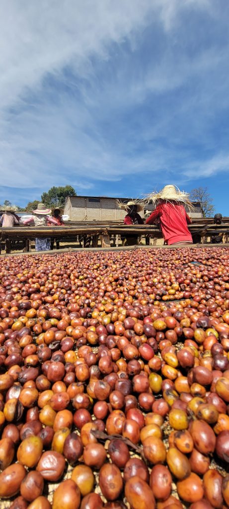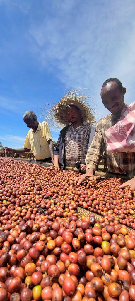 During the harvest months the Benti Nenka site employs about 160 people to manage the continuous rotating and sorting of sundried cherry, as well as intake, payment, security, and inventory operations. All workers and their families receive educational resources, full daily meals, and on-site lodging during the harvest. They are also pursuing sustainability and social governance certifications to expand their global market.